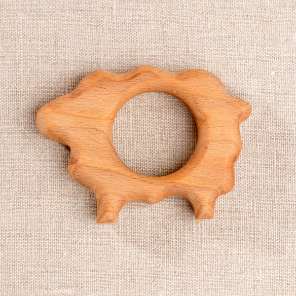 Уникальные деревянные игрушки ручной работы ТМ "Леснушки". Деревянный грызунок - то что нужно для режущихся зубок и чешущихся десенок! Аккуратно, с фантазией выпиленная из массива бука кудрявая овечка безупречно отшлифованная вручную так и просится на зубок.