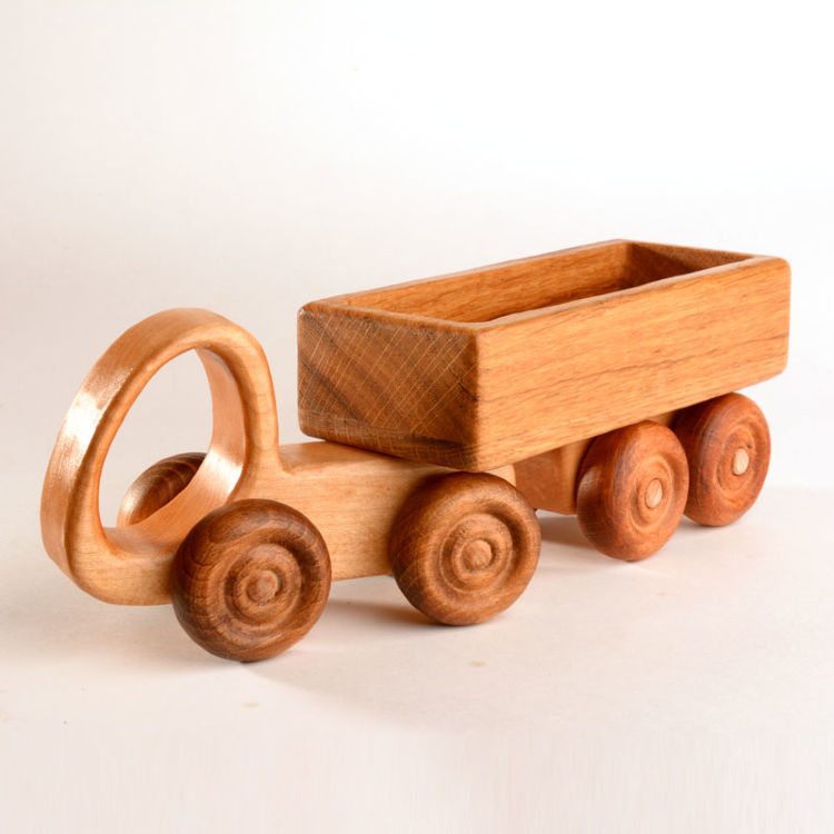 Наравне с деревянной машинкой "Лесовоз", одна из самых больших машин в серии транспортных средств от "Леснушек". Крепкая, прочная, и конечно очень красивая (чего только стоят фирменные тонированные фигурные буковые колесики!). Тягач выполнен из клена, прицеп - дубовый. Можно грузить и возить все что только душе угодно! Прицеп соединен с тягачом таким образом, чтобы не создавать помех при любом радиусе разворота - ведь на стройке, даже игрушечной, всегда приходиться маневрировать.